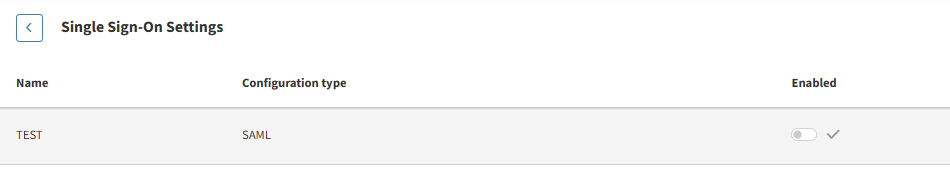 Save the configuration in our platform. After saving, the SSO configuration is not active yet. To activate SSO, toggle Enabled to on.