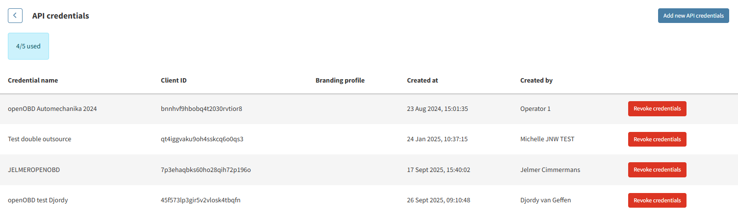 - To add new credentials click the button "Add new API credentials"
