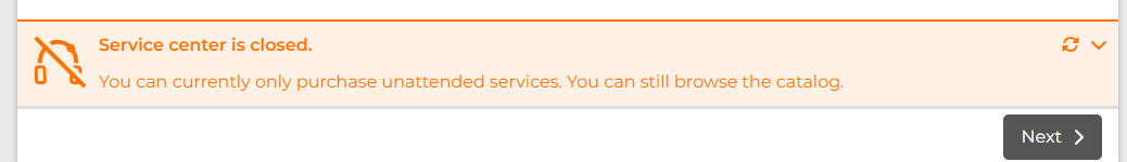 Customers will see a message informing that the service center is closed