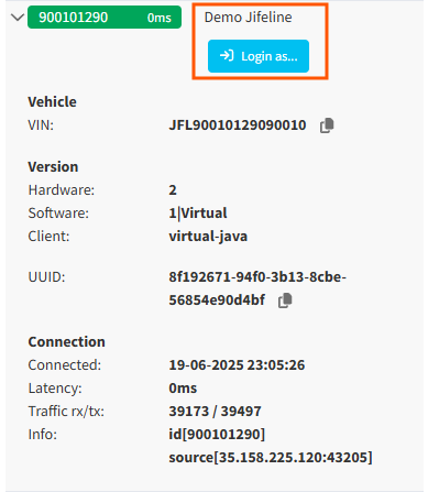 It is also possible to open the connector and log in as the associated client, allowing you to support or monitor the session as if you were the customer.